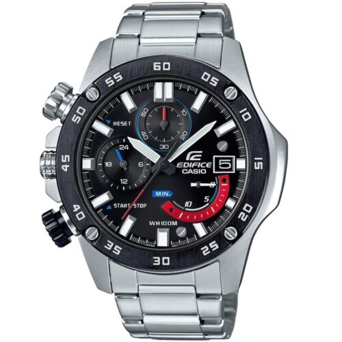 Casio Edifice Chronograph Watch for Men Black Dial with Silver Stainless steel Strap EF-558D-1AV