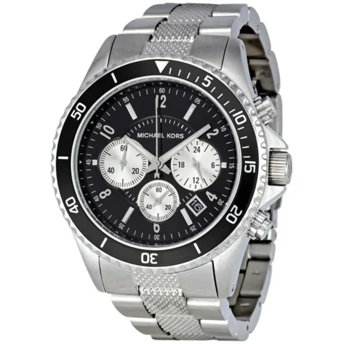 Michael Kors Michael Kors Luxe Diver Big Men’s Watch with a stylish Black dial and Silver & Black Stainless steel & Silicone rubber strap. Water resistant up to 100 Meters, powered by Quartz (Battery), and designed with Michael Kors’s signature elegance.