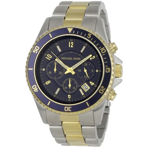 Michael Kors Michael Kors Everest Men’s Watch with a stylish Blue dial and Silver & Gold Stainless steel strap. Water resistant up to 100 Meters, powered by Quartz (Battery), and designed with Michael Kors’s signature elegance.