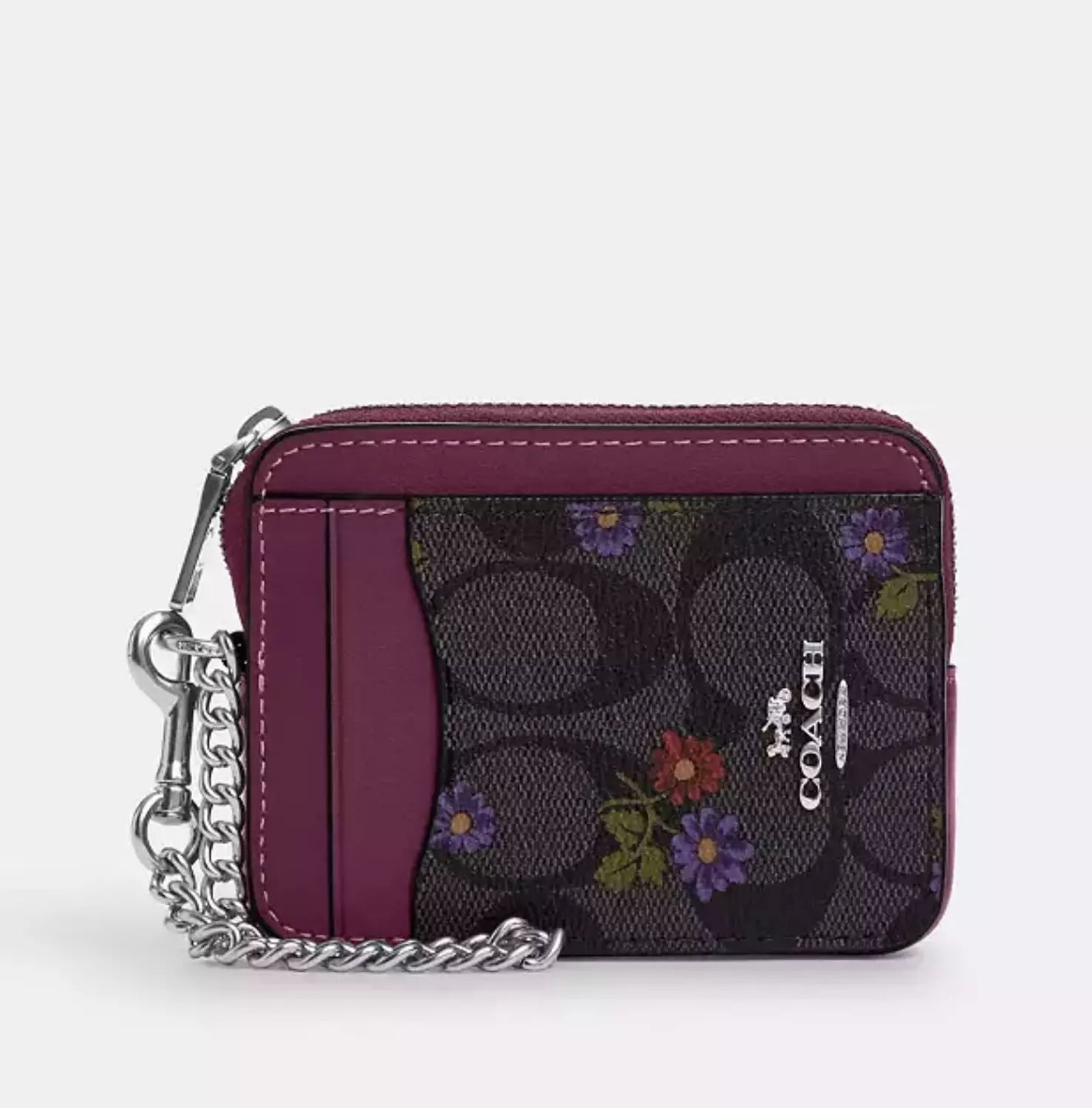 Coach Zip Chain Card Case in Signature Canvas