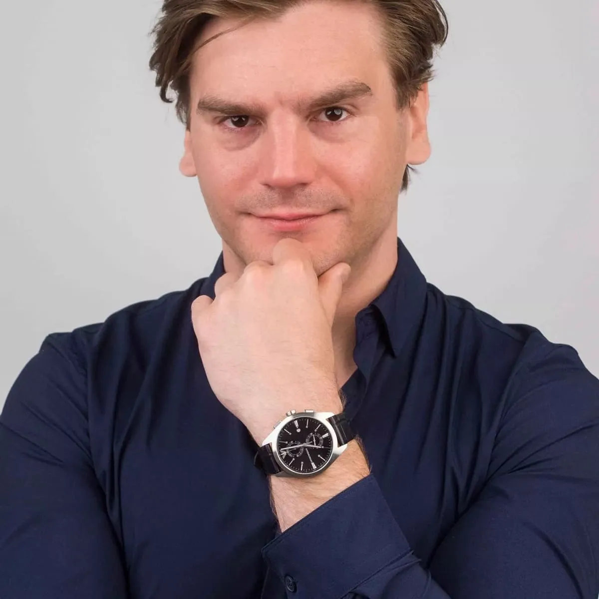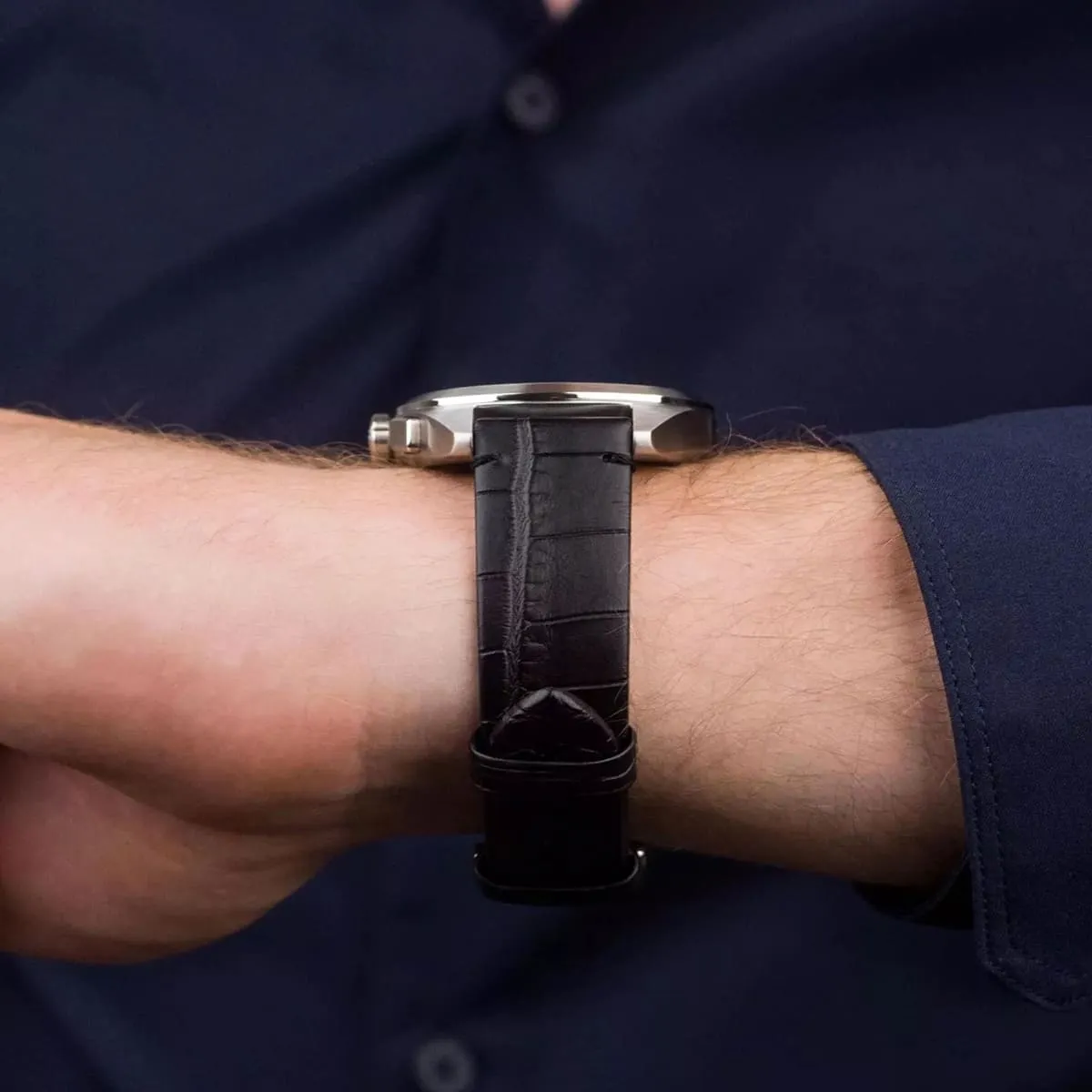 Black Genuine Leather strap offers a modern and versatile look that matches both formal and casual outfits.