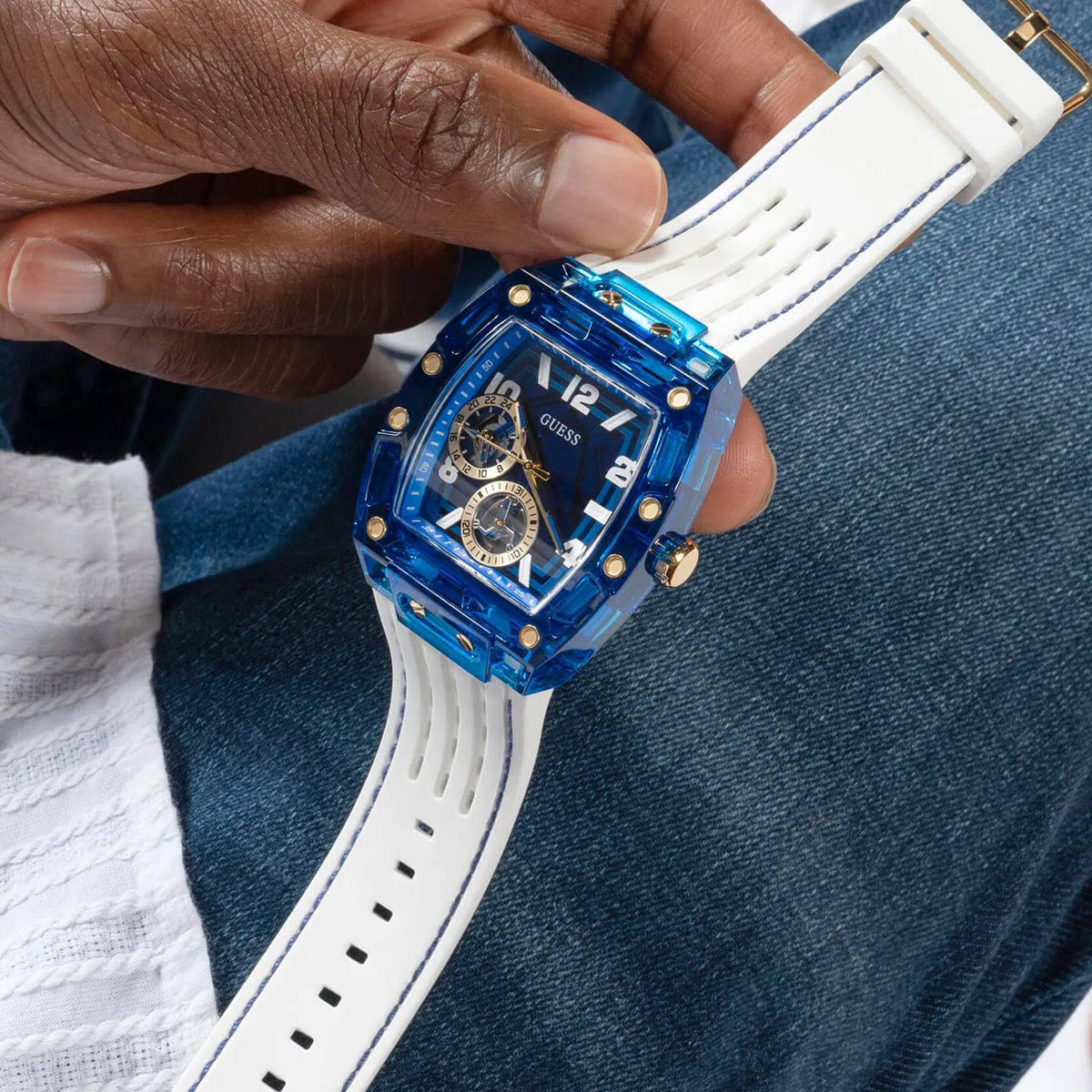 White Silicone rubber strap offers a modern and versatile look that matches both formal and casual outfits.