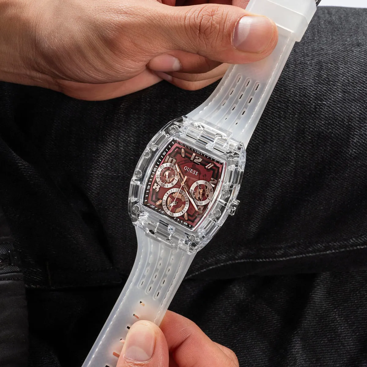 Transparent Silicone rubber strap offers a modern and versatile look that matches both formal and casual outfits.