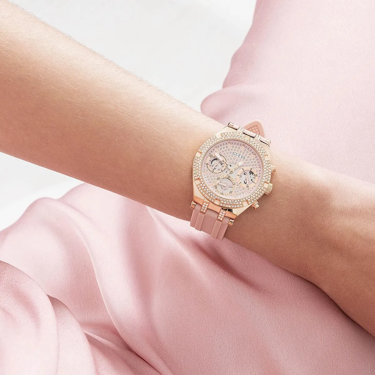 Pink Silicone rubber strap offers a modern and versatile look that matches both formal and casual outfits.