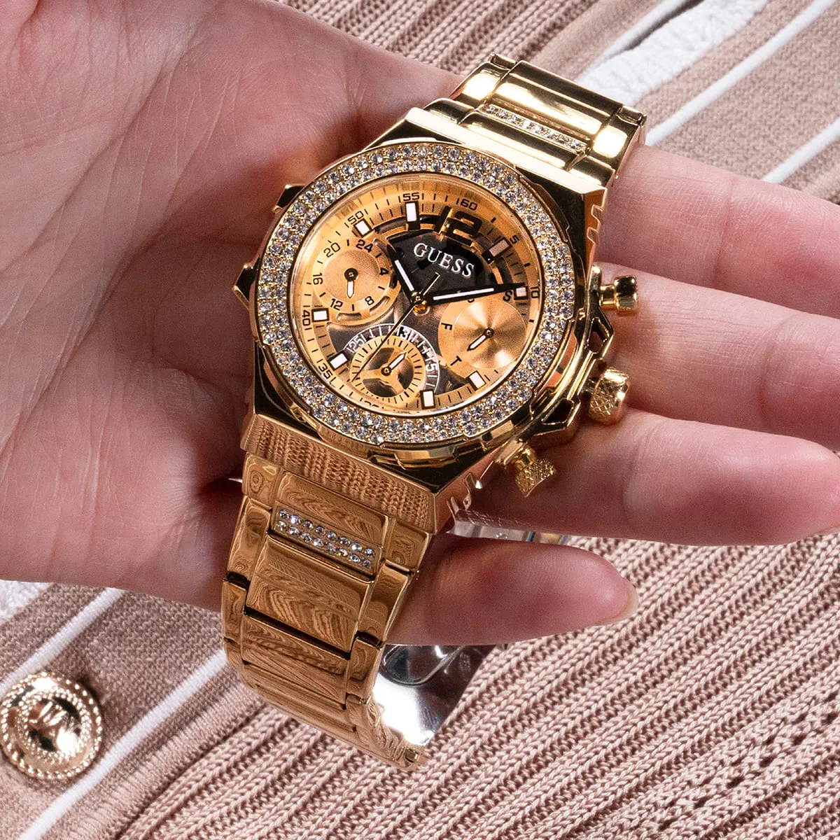 Quartz (Battery), and designed with Guess’s signature elegance.