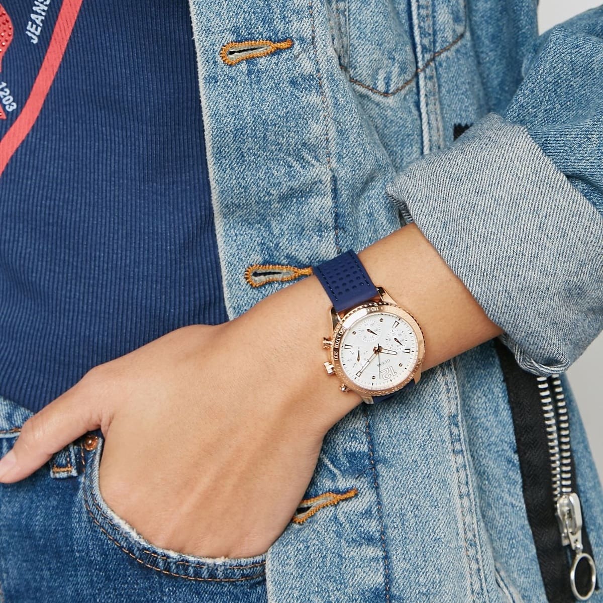 Blue Rubber strap offers a modern and versatile look that matches both formal and casual outfits.