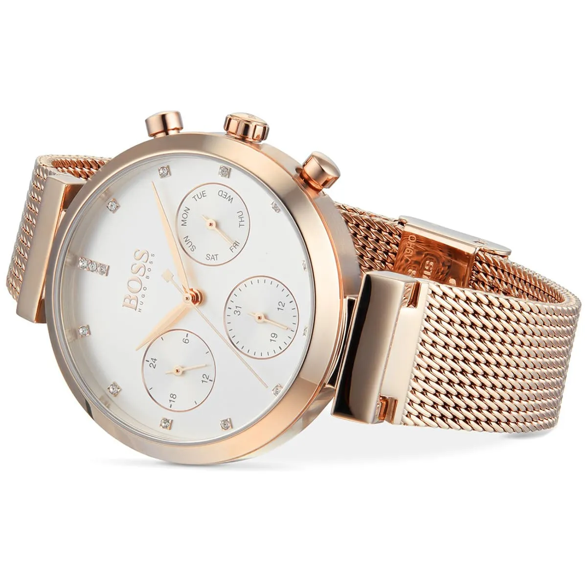 Rose Gold Stainless steel strap offers a modern and versatile look that matches both formal and casual outfits.
