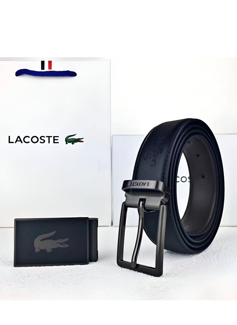 This Lacoste belt set is a testament to French elegance and sophisticated design. The reversible belt, featuring two distinct looks and buckles, allows you to effortlessly switch up your style to suit any occasion. The sleek and minimalist design, combined with the high-quality leather and iconic Lacoste crocodile logo, ensures you’ll make a statement wherever you go.