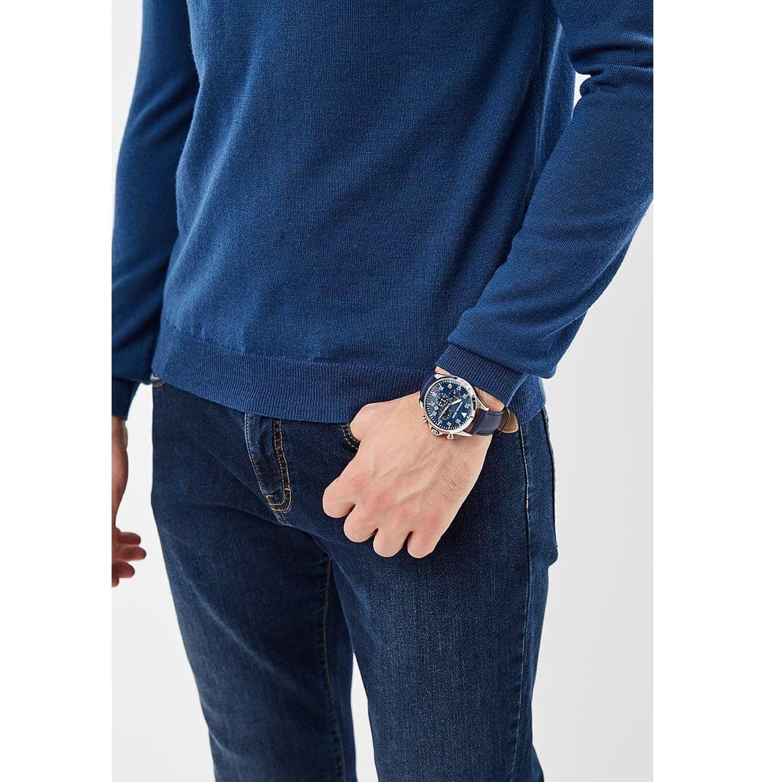 Blue Genuine Leather strap offers a modern and versatile look that matches both formal and casual outfits.