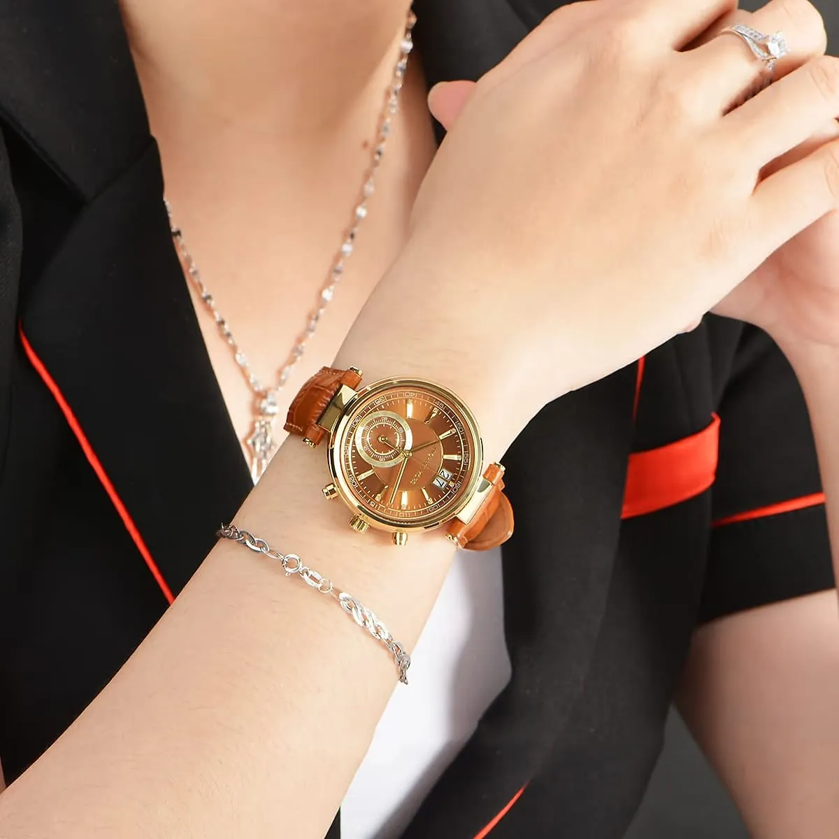 Brown Genuine leather strap offers a modern and versatile look that matches both formal and casual outfits.