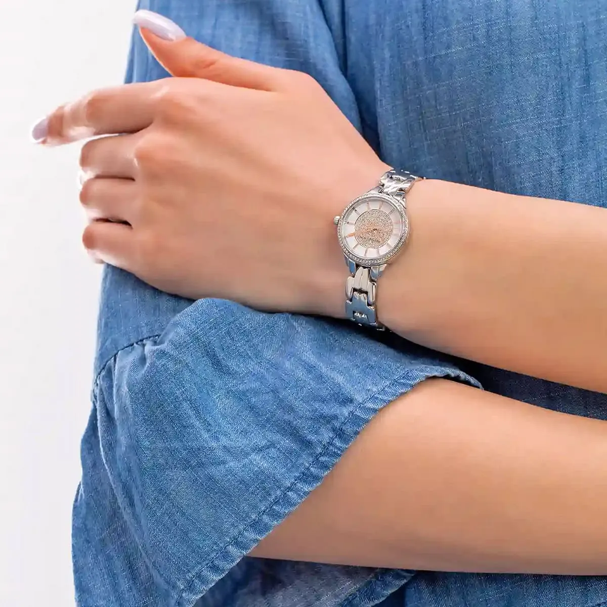 Silver Stainless steel strap offers a modern and versatile look that matches both formal and casual outfits.
