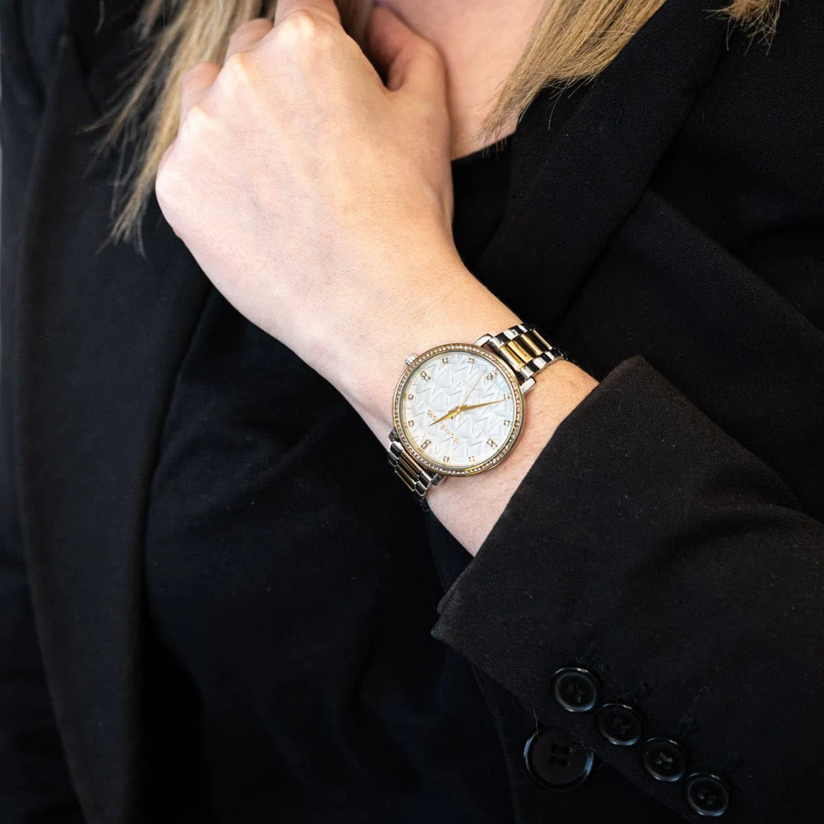 Silver & Gold Stainless steel strap offers a modern and versatile look that matches both formal and casual outfits.