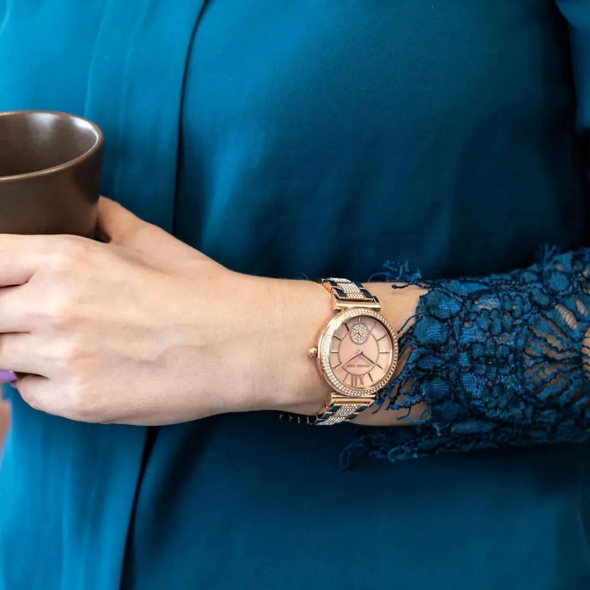 Rose Gold Stainless steel strap offers a modern and versatile look that matches both formal and casual outfits.