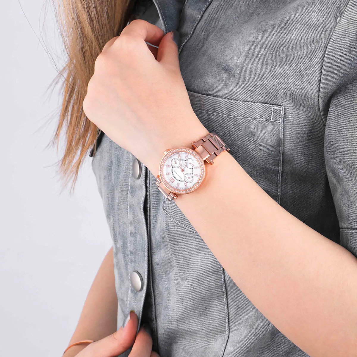Rose Gold Stainless steel strap offers a modern and versatile look that matches both formal and casual outfits.