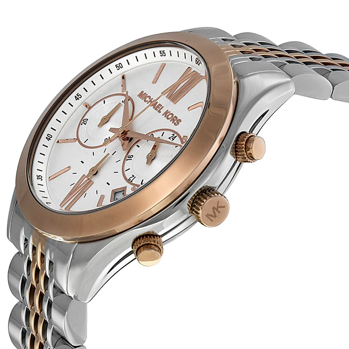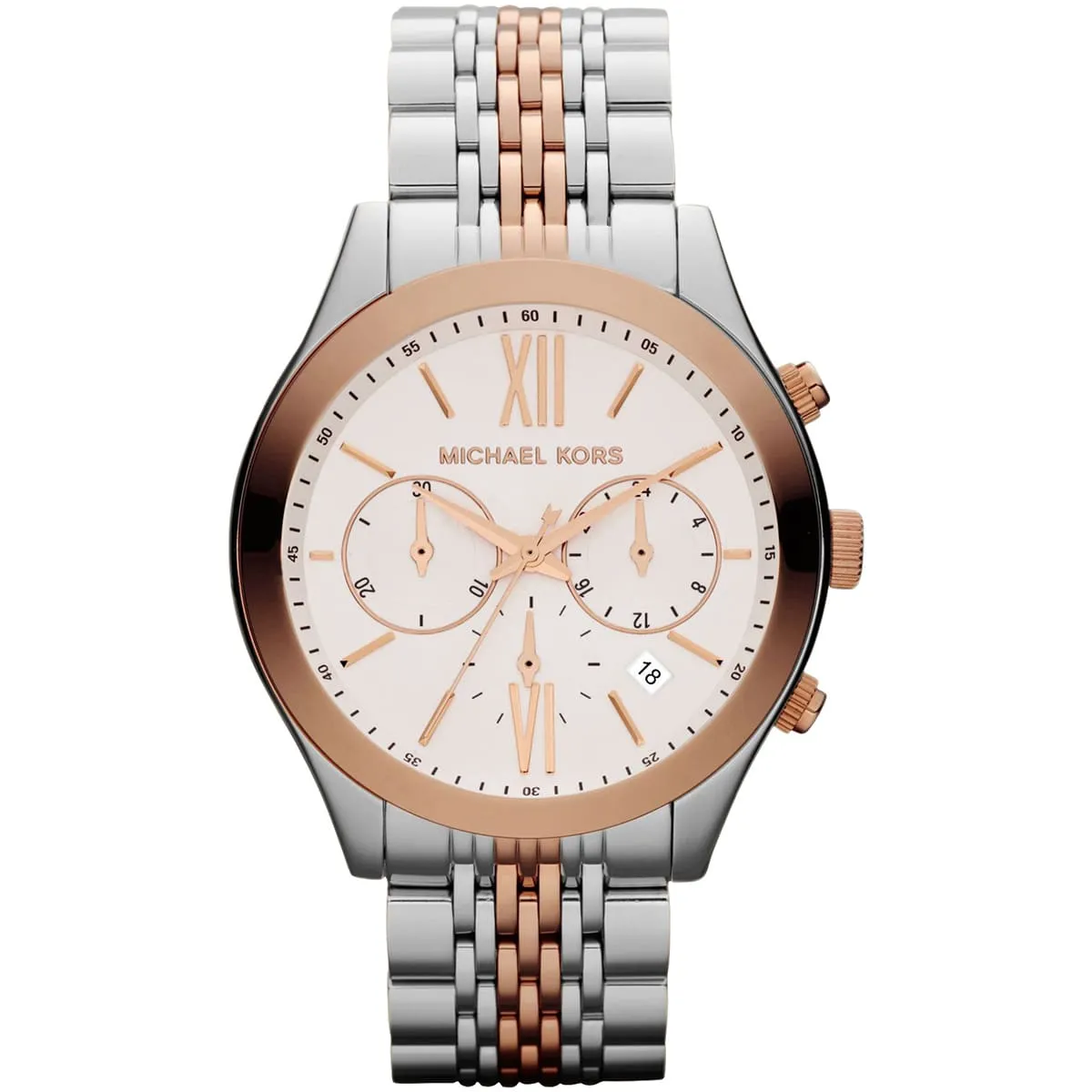 Silver & Rose Gold Stainless steel strap.