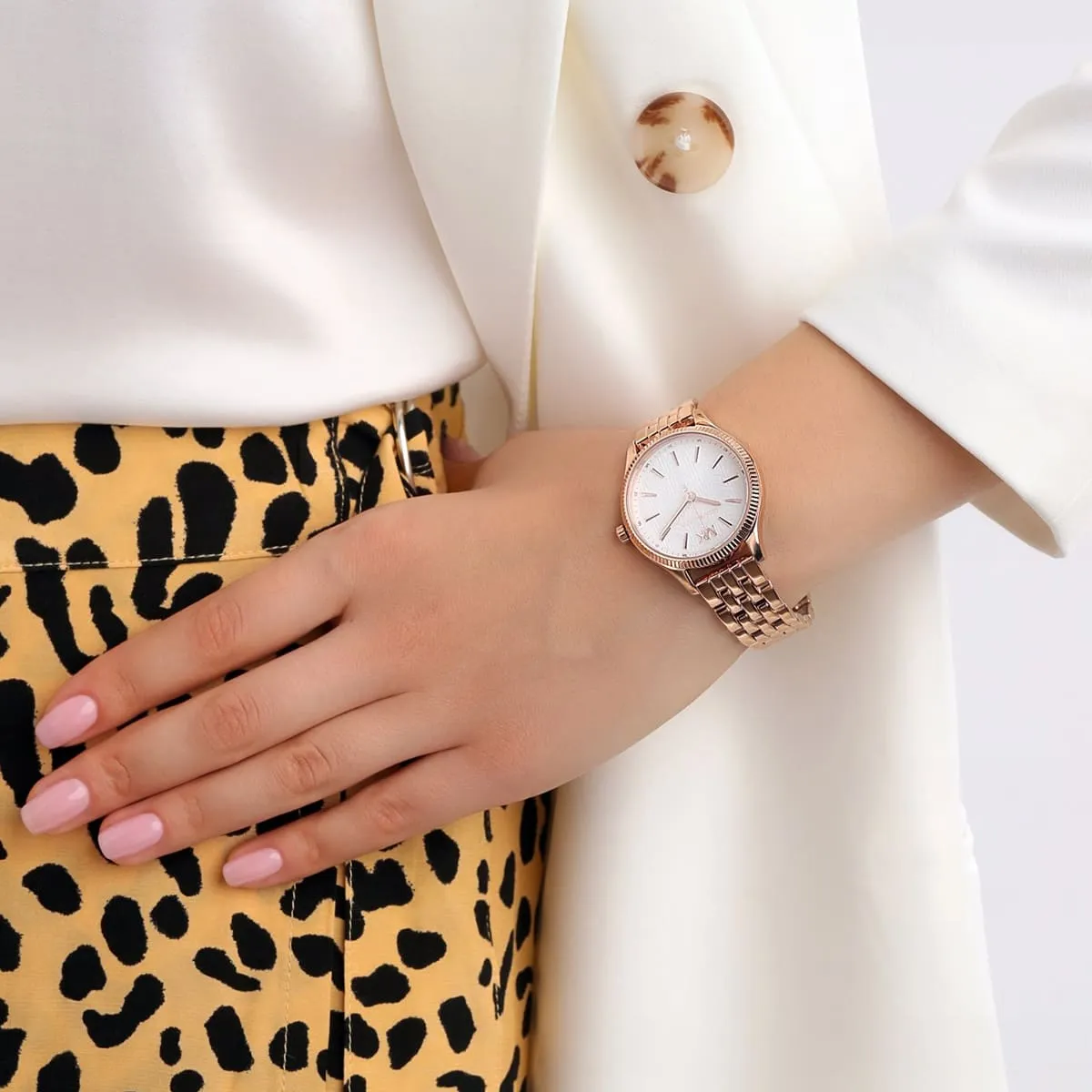Rose Gold Stainless steel strap offers a modern and versatile look that matches both formal and casual outfits.