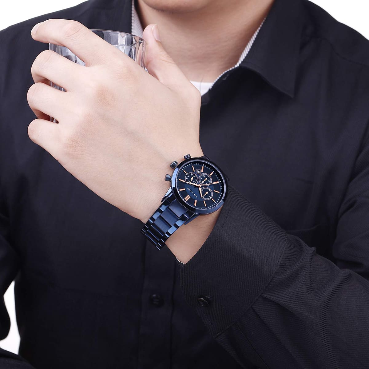 Blue Stainless steel strap offers a modern and versatile look that matches both formal and casual outfits.