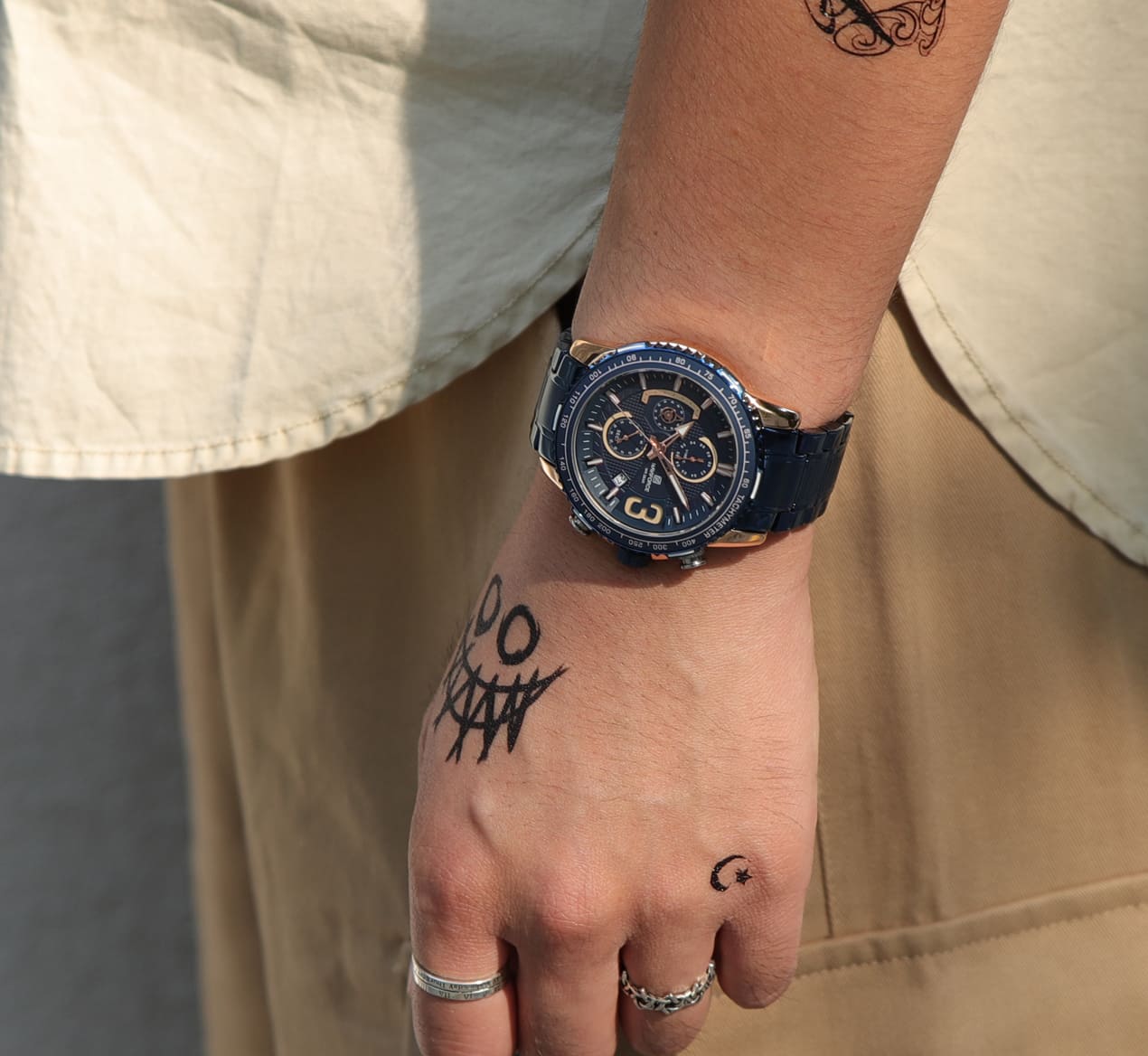 Blue Metal strap offers a modern and versatile look that matches both formal and casual outfits.