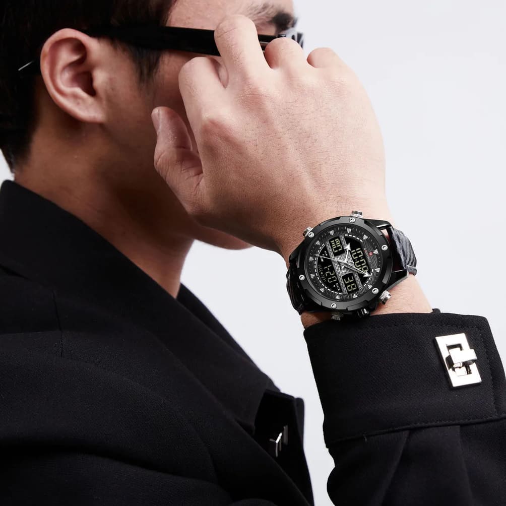 Black Leather strap offers a modern and versatile look that matches both formal and casual outfits.