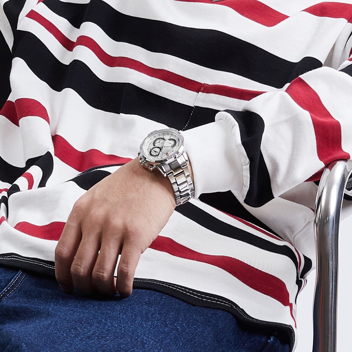 Silver Metal strap offers a modern and versatile look that matches both formal and casual outfits.
