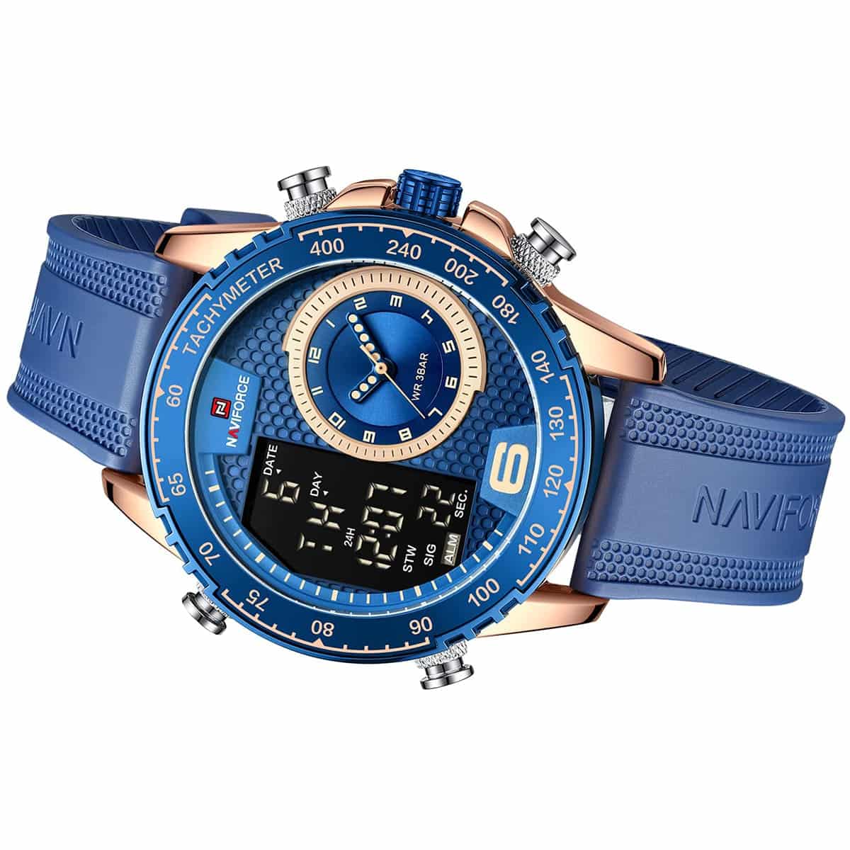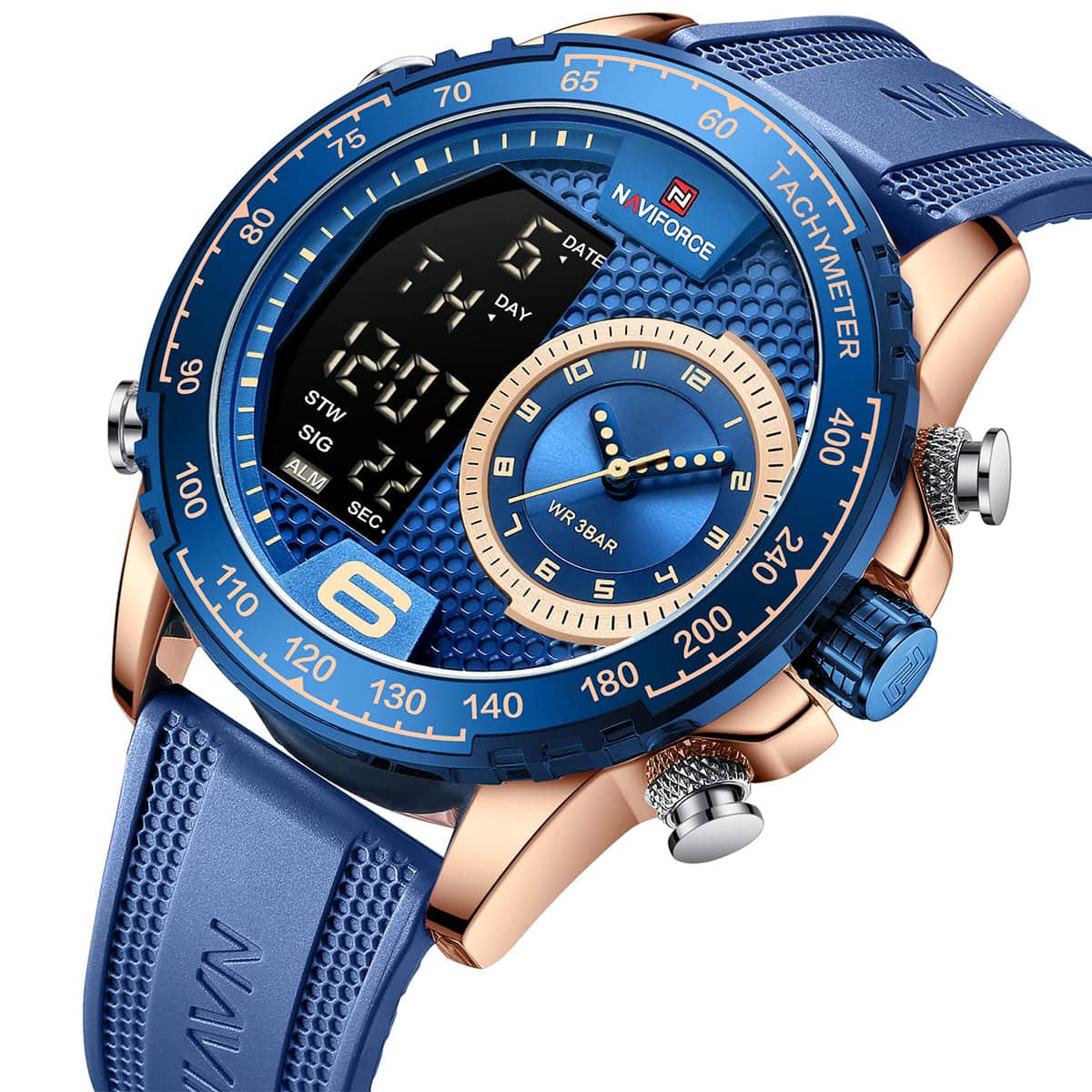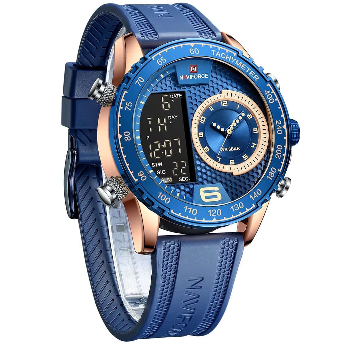 Blue Rubber strap offers a modern and versatile look that matches both formal and casual outfits.