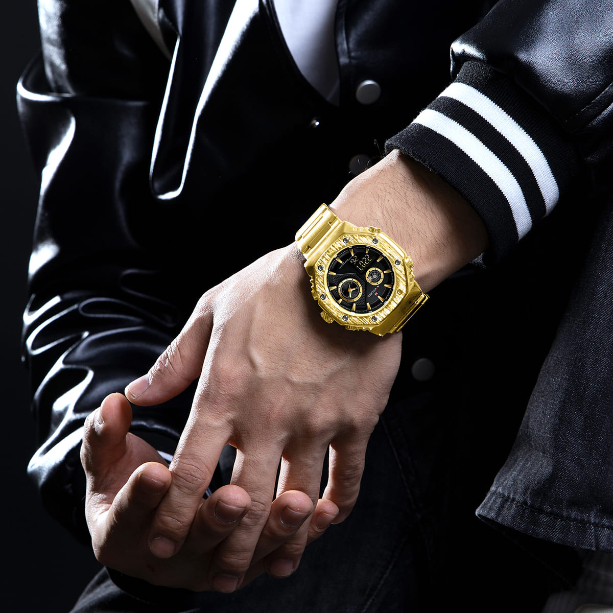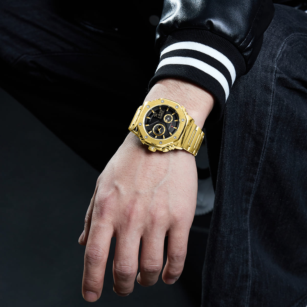 Gold Stainless steel strap offers a modern and versatile look that matches both formal and casual outfits.
