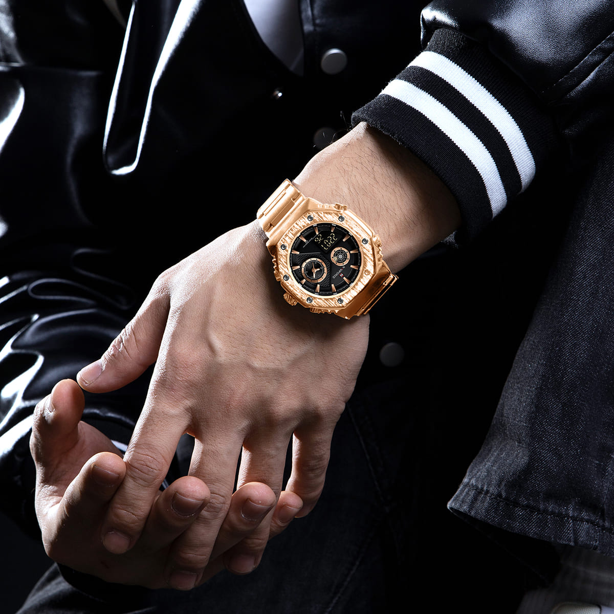 Rose Gold Stainless steel strap offers a modern and versatile look that matches both formal and casual outfits.