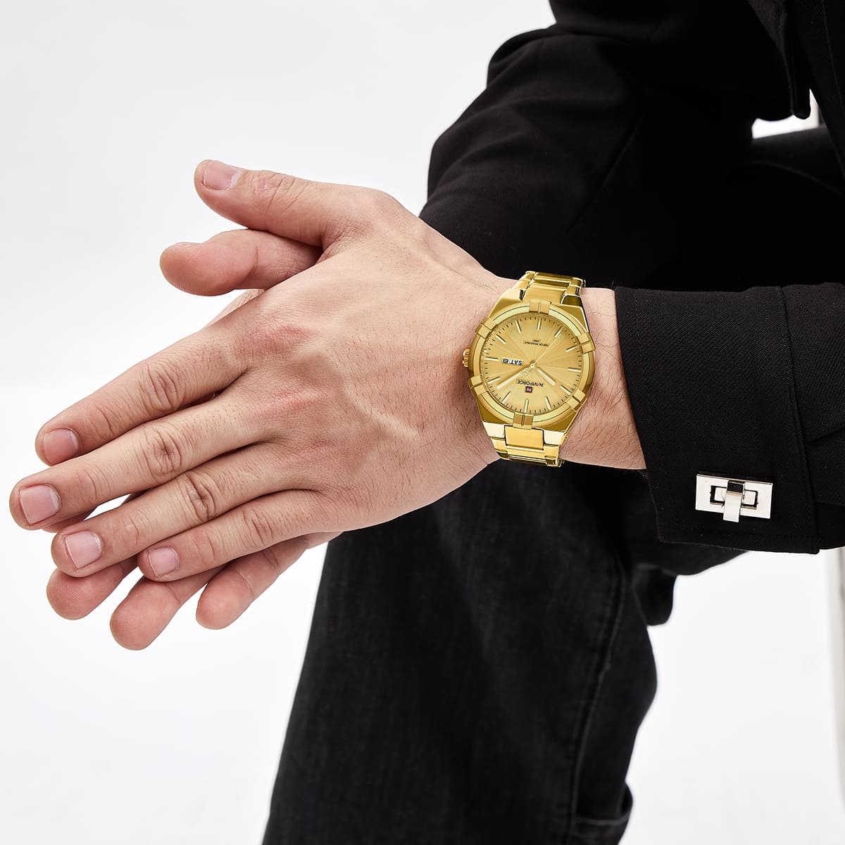 Gold Stainless steel strap offers a modern and versatile look that matches both formal and casual outfits.