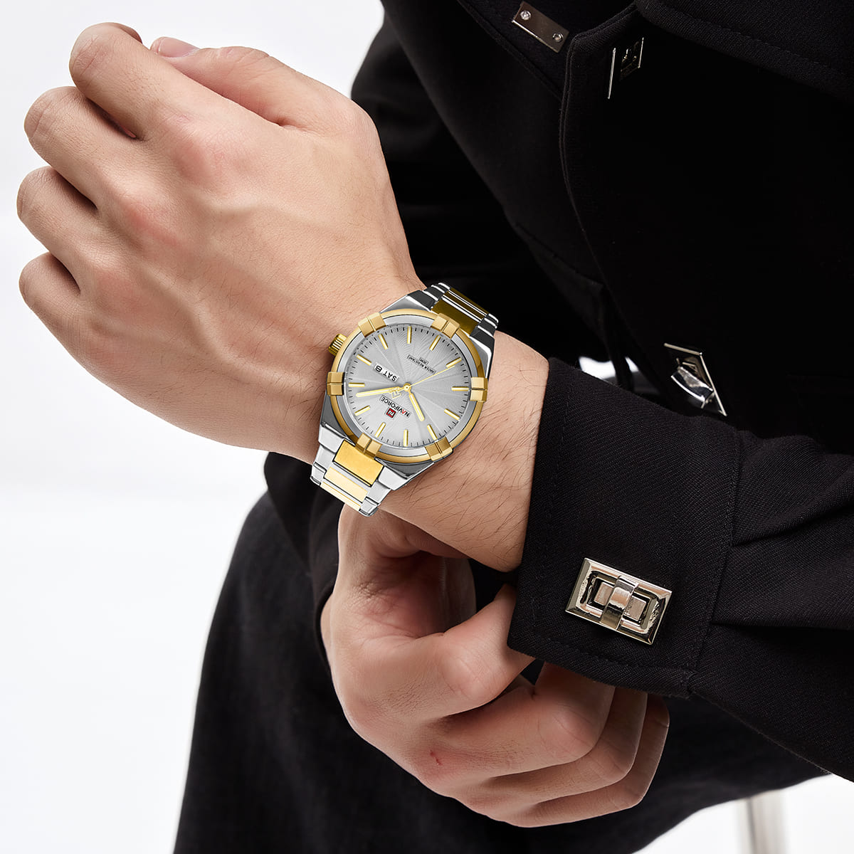 Silver & Gold Stainless steel strap offers a modern and versatile look that matches both formal and casual outfits.
