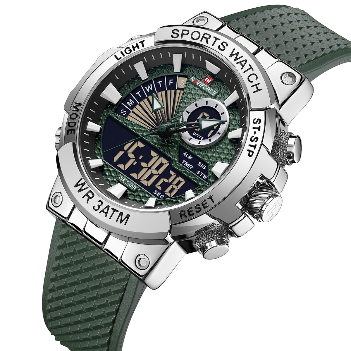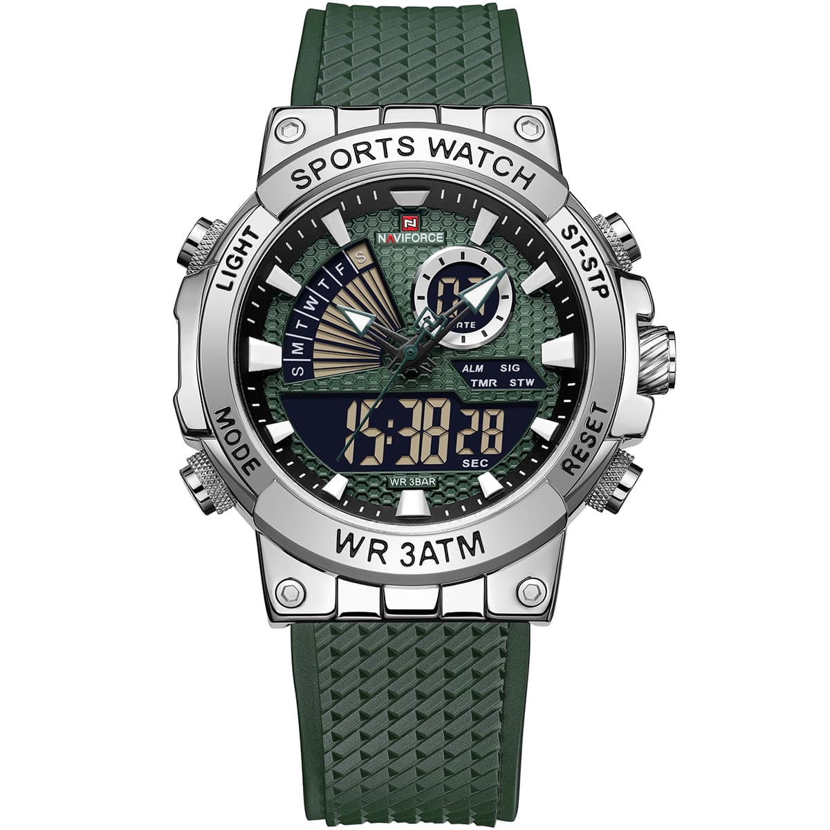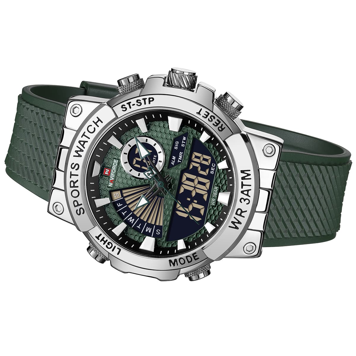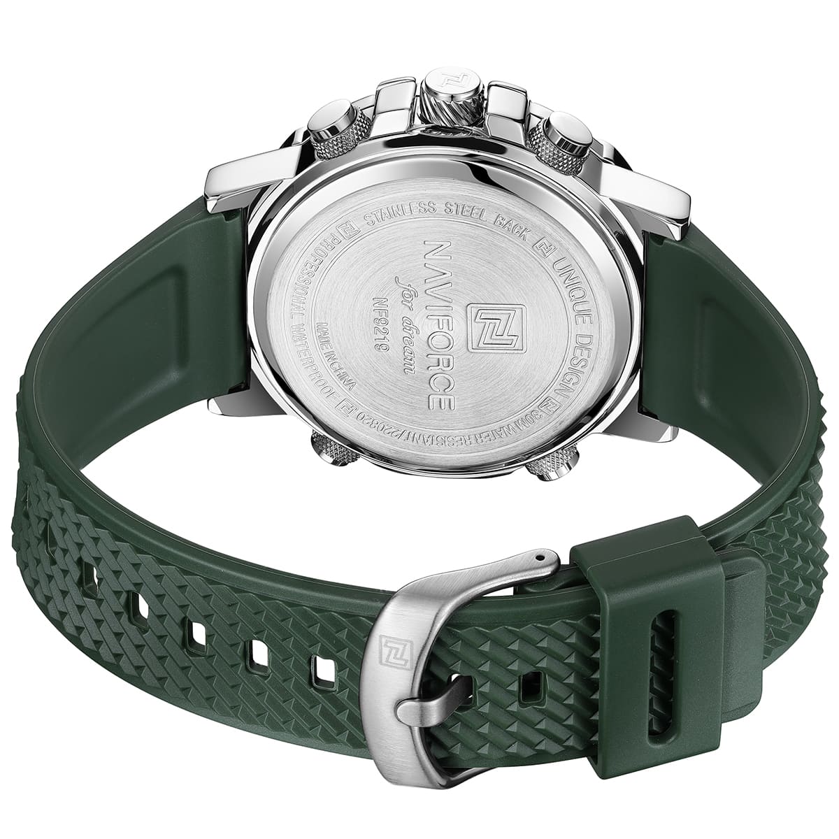 Green Silicone rubber strap offers a modern and versatile look that matches both formal and casual outfits.