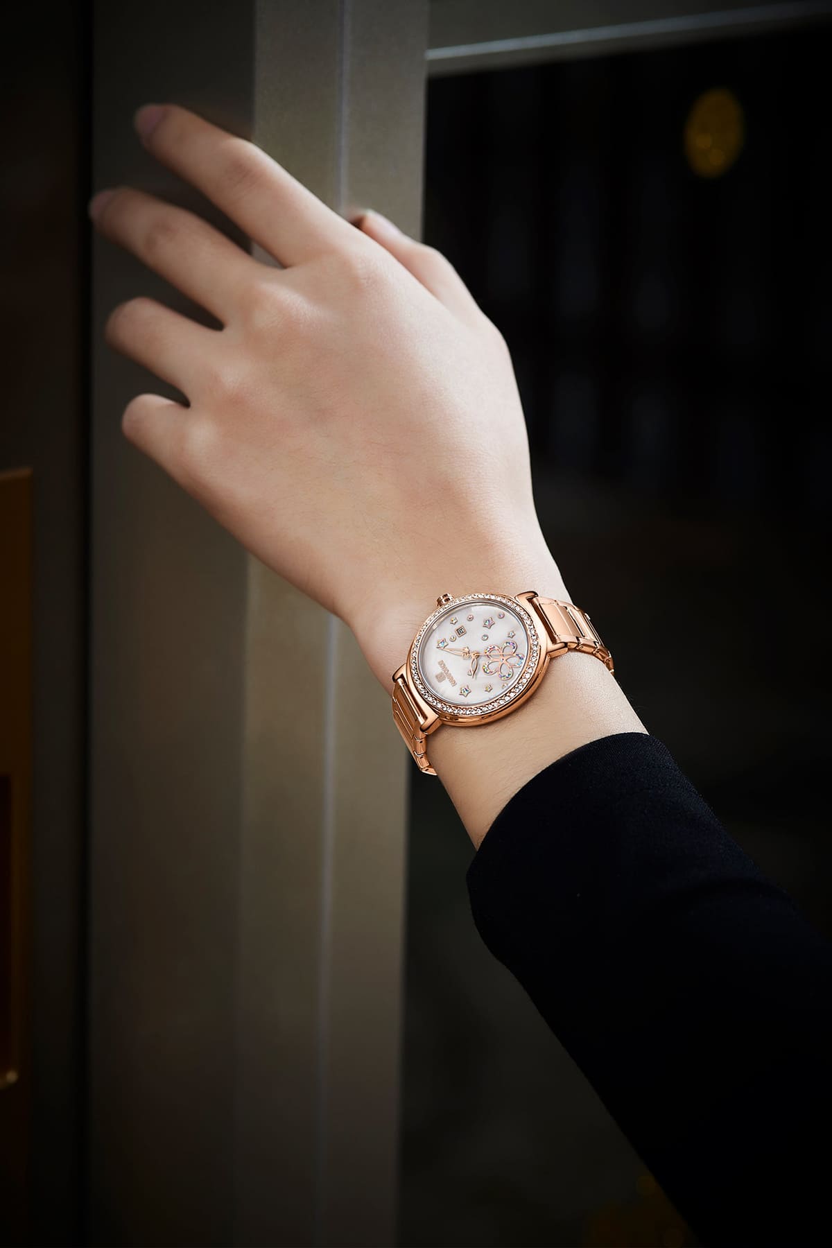Rose Gold Metal strap offers a modern and versatile look that matches both formal and casual outfits.