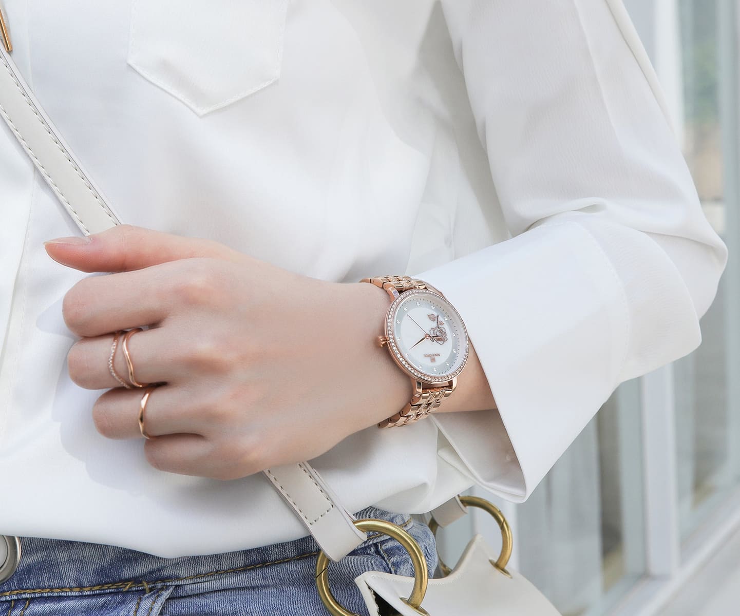Rose Gold Metal strap offers a modern and versatile look that matches both formal and casual outfits.