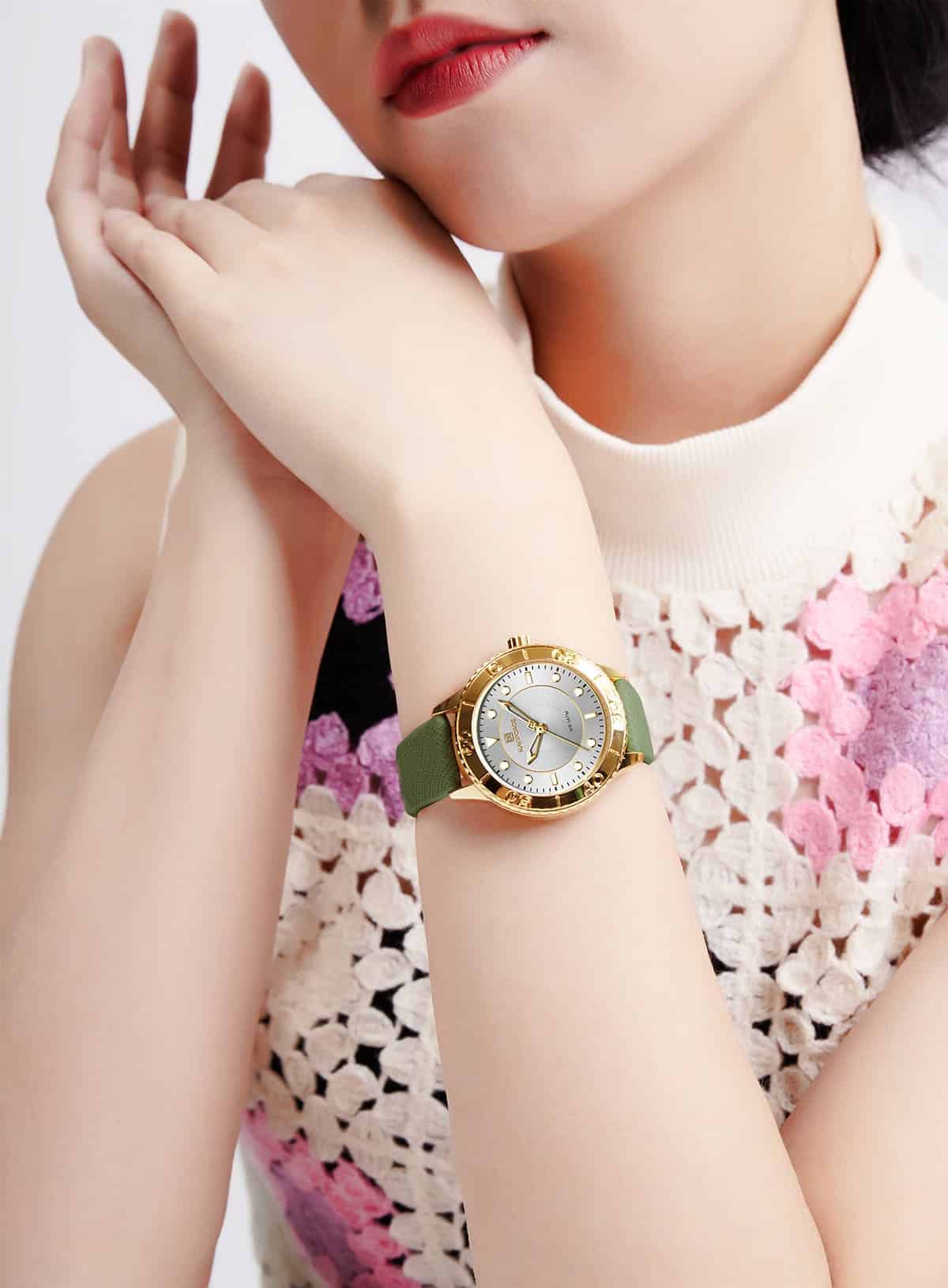 Green Leather strap offers a modern and versatile look that matches both formal and casual outfits.