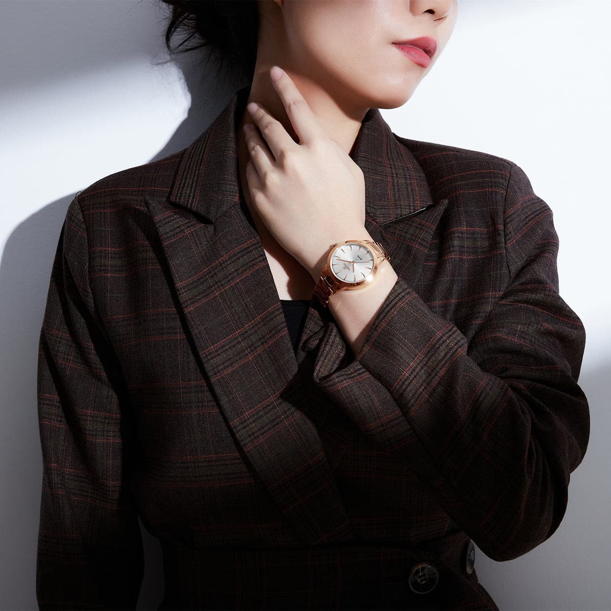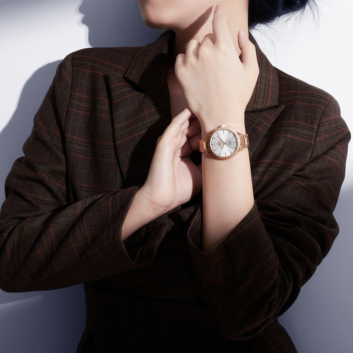 Rose Gold Metal strap offers a modern and versatile look that matches both formal and casual outfits.