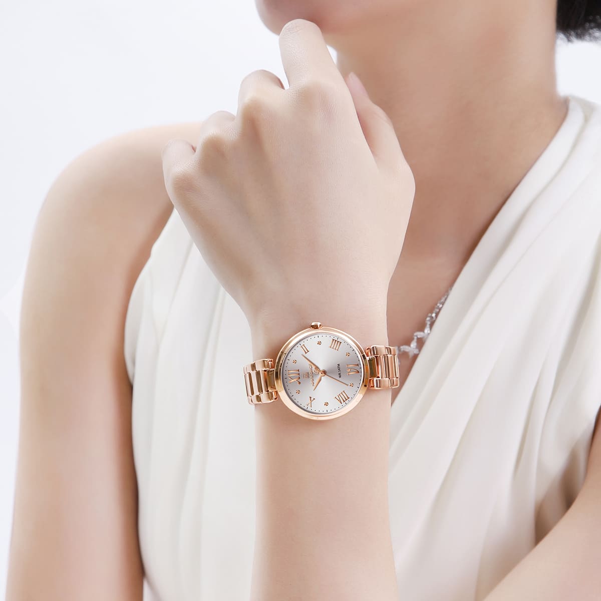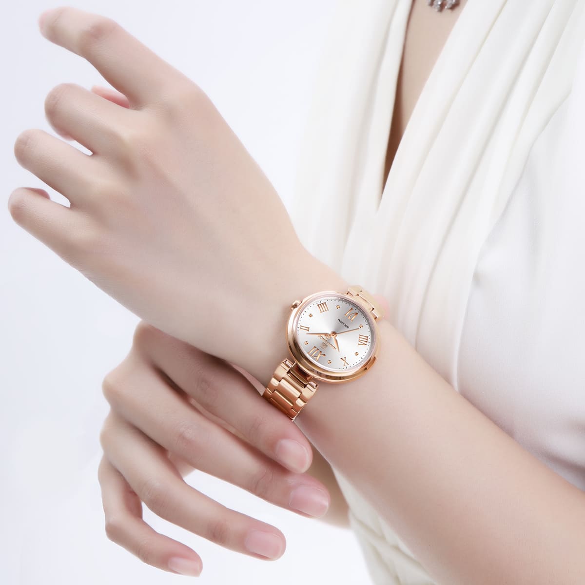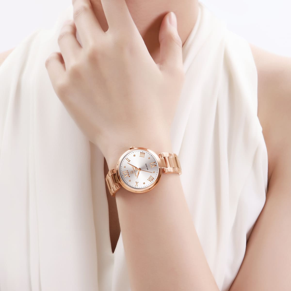 Rose Gold Stainless steel strap offers a modern and versatile look that matches both formal and casual outfits.
