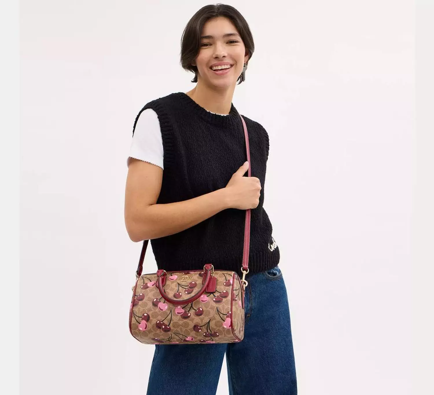 The Coach Rowan Satchel Bag in Signature Canvas, as shown in the image, has the following approximate dimensions:
