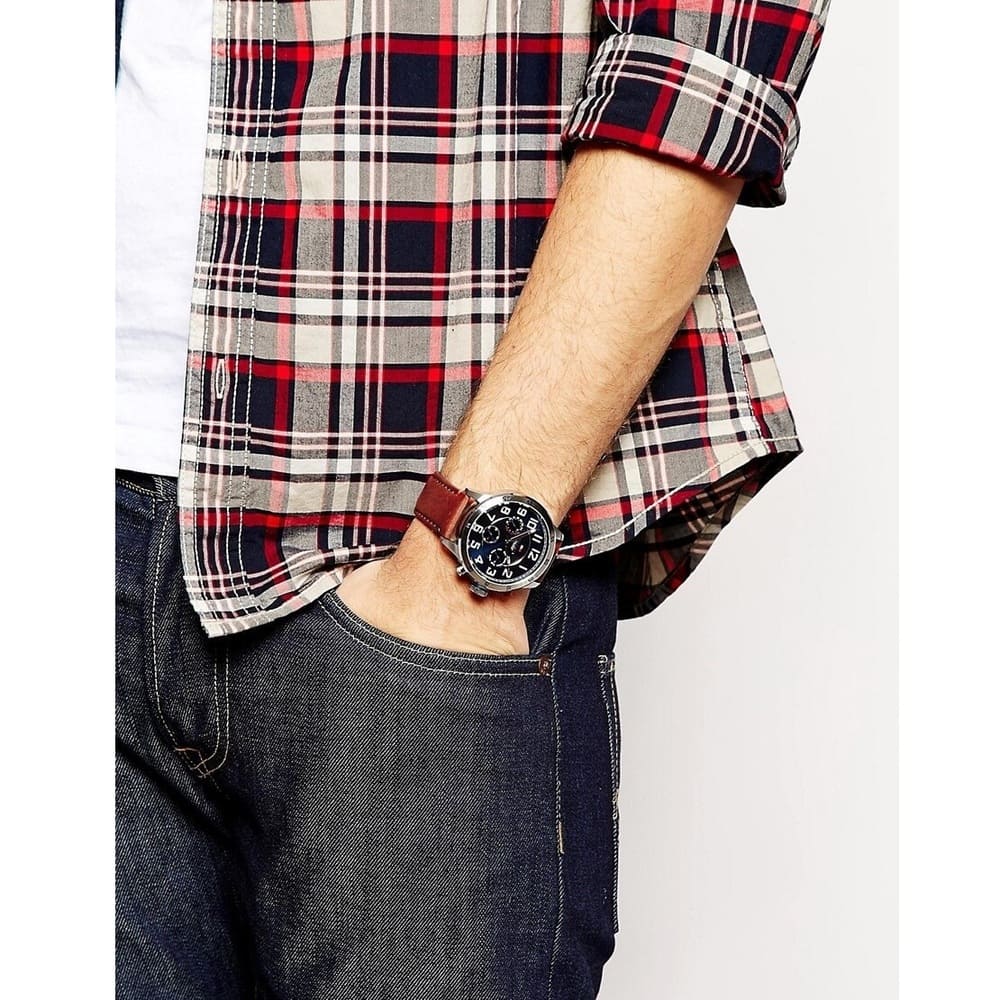 Brown Genuine Leather strap offers a modern and versatile look that matches both formal and casual outfits.