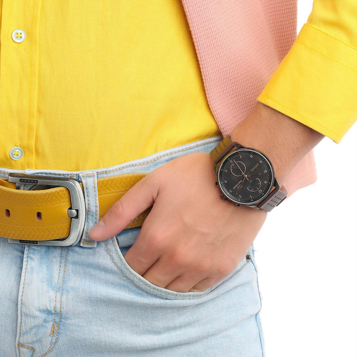 Brown Genuine Leather strap offers a modern and versatile look that matches both formal and casual outfits.