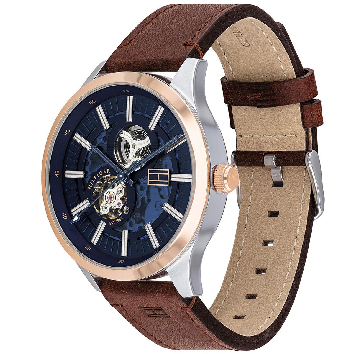 Brown Genuine Leather strap offers a modern and versatile look that matches both formal and casual outfits.